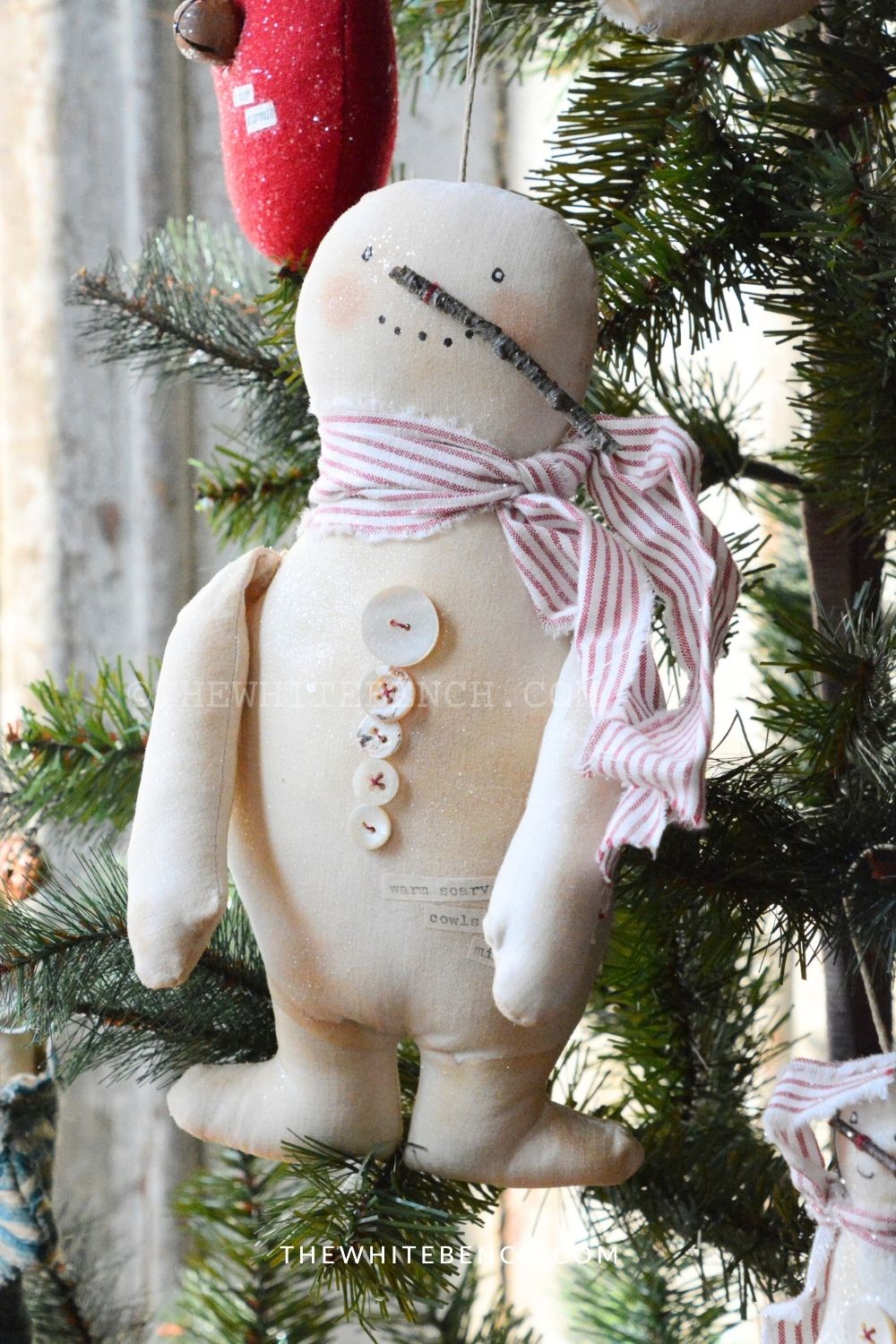 | The sewing pattern and step-by-step sewing tutorial for Fred the snowman is here. |